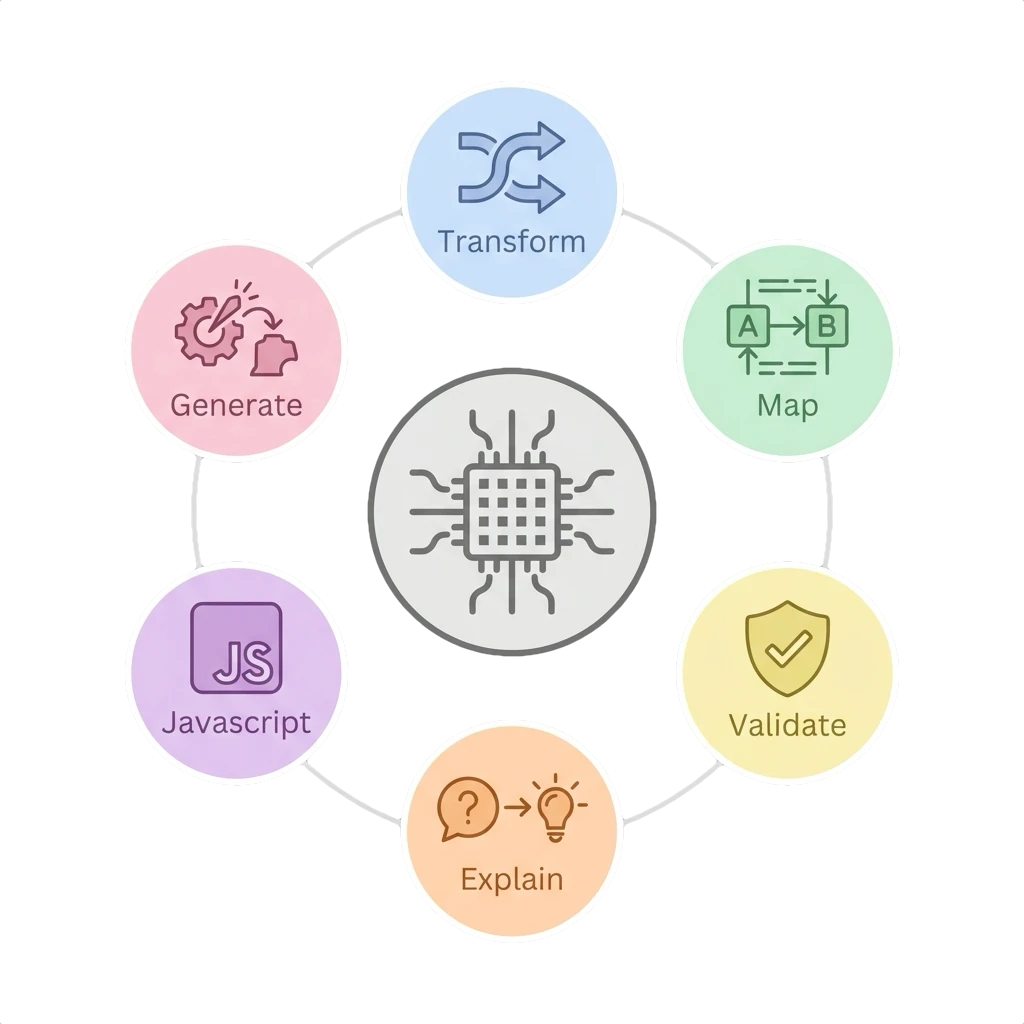 For any data transformations, AI generates testable code that, once approved, remains static.