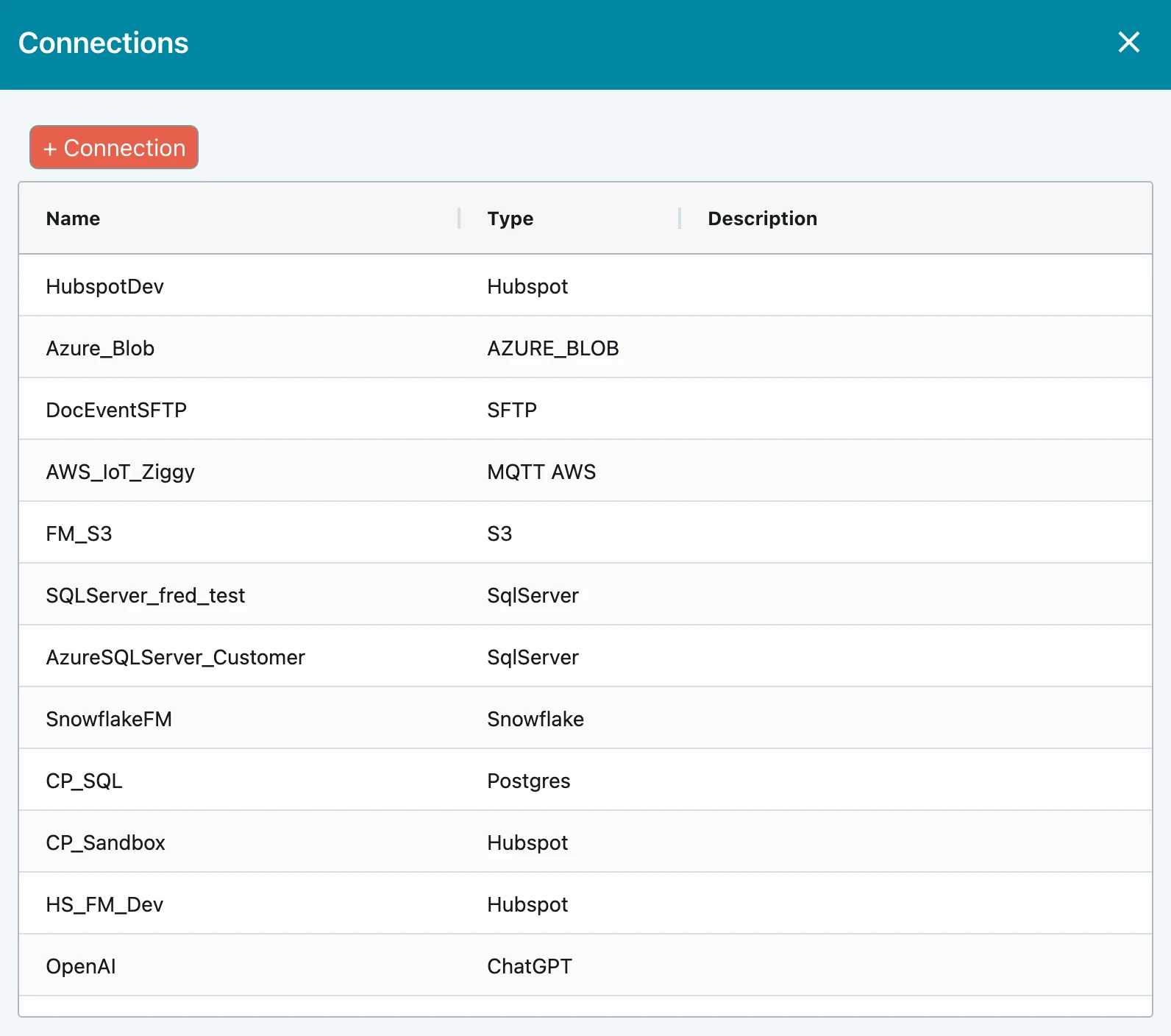 Store and manage your connection parameters and reference from your flows. You can optionally configure a development/production pair.