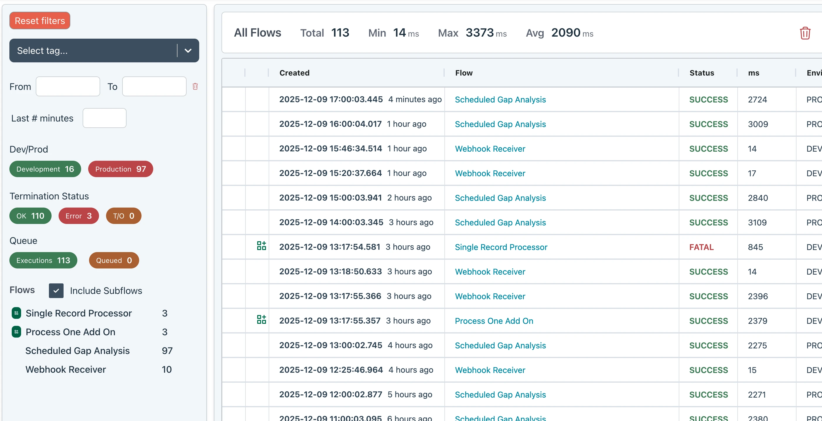 You have the option of storing successful and/or failed flow executions to a history log. These can then be viewed in a browser.