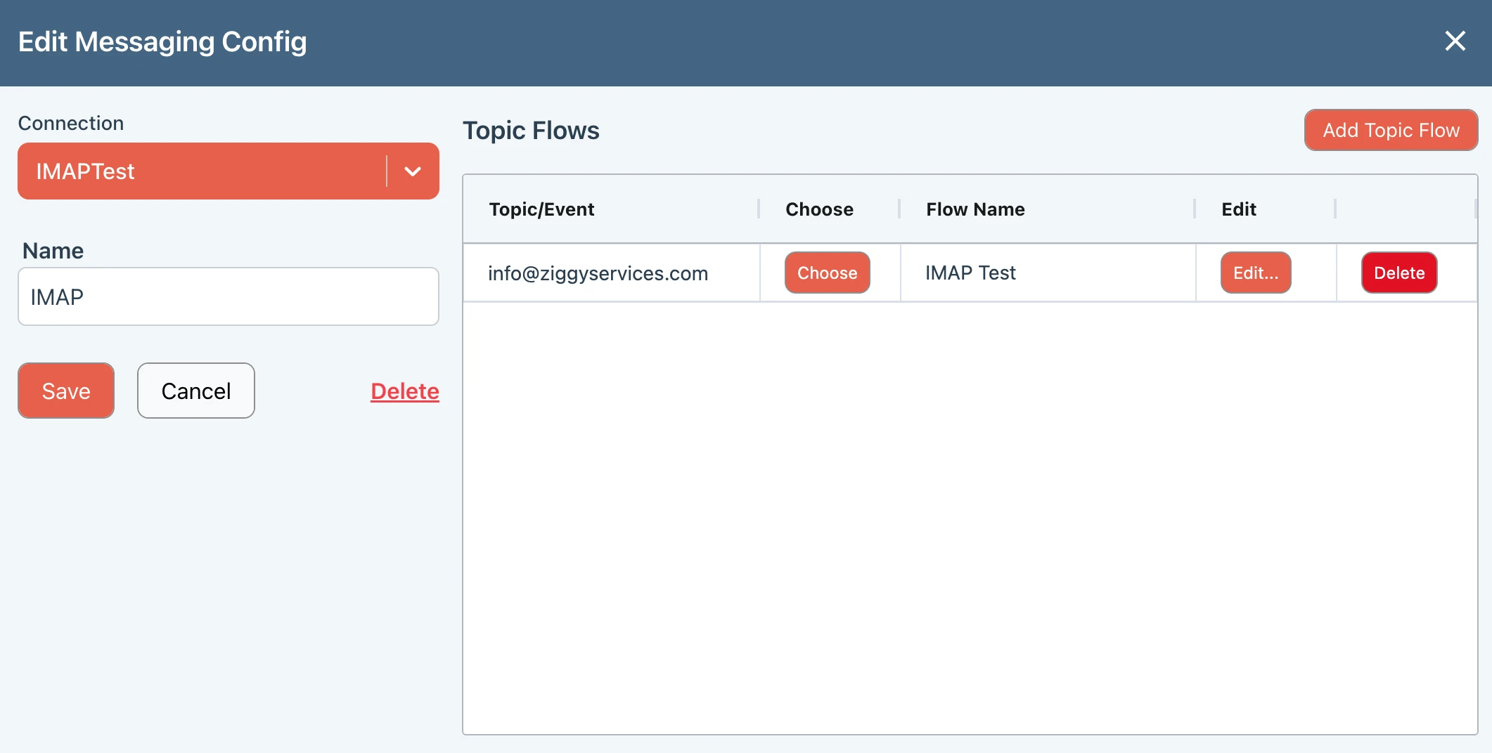 Configure Ziggy's Messaging to monitor an email address. Each email then triggers a Ziggy Flow
